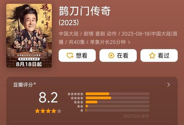 古装武侠喜剧已经有很长一段时间没有出现过像样的作品了。不知道大家是否还记得2023年8月推出的一部古装武侠喜剧《鹊刀门传奇》,其以幽默搞笑的风格和流畅的武打场面赢得了众多观众的喜爱,到目前为止,豆瓣上的评分仍然高达8.2。然而,在这一年多的时间里,似乎没有一部古装武侠喜剧能达到《鹊刀门传奇》的口碑。